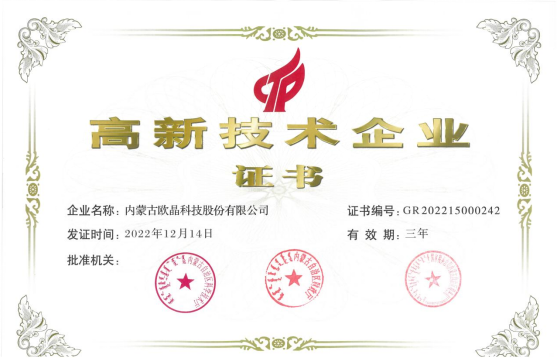 內(nèi)蒙古歐晶科技股份有限公司作為自治區(qū)2022年度首家深交所主板上市(股票簡(jiǎn)稱:歐晶科技 股票代碼:001269)的國(guó)家級(jí)高新技術(shù)企業(yè),成立于2011年4月,位于內(nèi)蒙古呼和浩特市賽罕區(qū),公司立足于單晶硅材料產(chǎn)業(yè)鏈,主要為太陽能級(jí)單晶硅棒硅片的生產(chǎn)和輔助材料資源回收循環(huán)利用,提供配套產(chǎn)品及服務(wù),具體包括石英坩堝產(chǎn)品、硅材料清洗服務(wù)、切削液處理服務(wù)。下設(shè)五家全資子公司,分別分布于天津市、無錫市、寧夏等地。服務(wù)理念:始于客戶需求,終于客戶滿意經(jīng)營(yíng)...